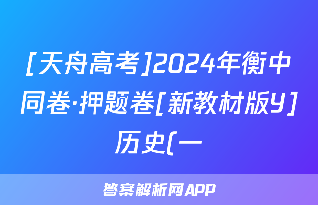 [天舟高考]2024年衡中同卷·押题卷[新教材版Y]历史(一)1试题