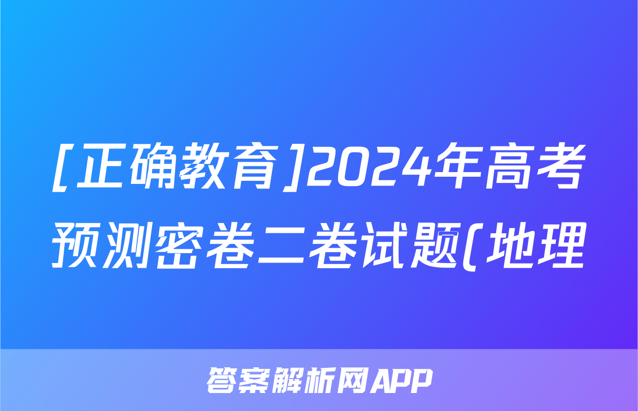 3、正确教育 2024年高考预测密卷二卷答案(地理)