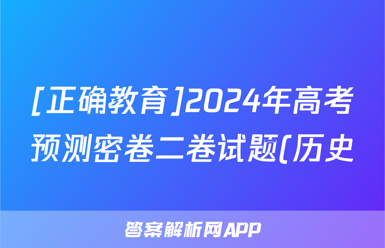 [正确教育]2024年高考预测密卷二卷试题(历史)正在持续更新,目前大联考答案为大家整理了相关试题及答案,供大家查缺补漏,高效提升成绩。