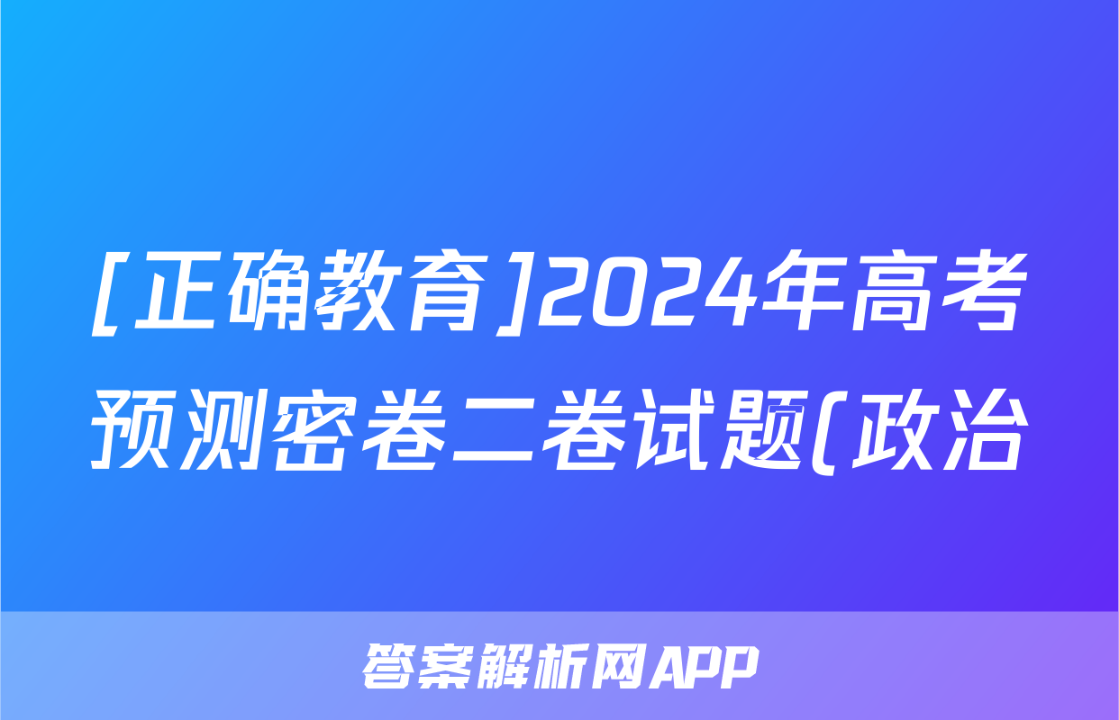 [正确教育]2024年高考预测密卷二卷试题(政治)正在持续更新,目前大联考答案为大家整理了相关试题及答案,供大家查缺补漏,高效提升成绩。