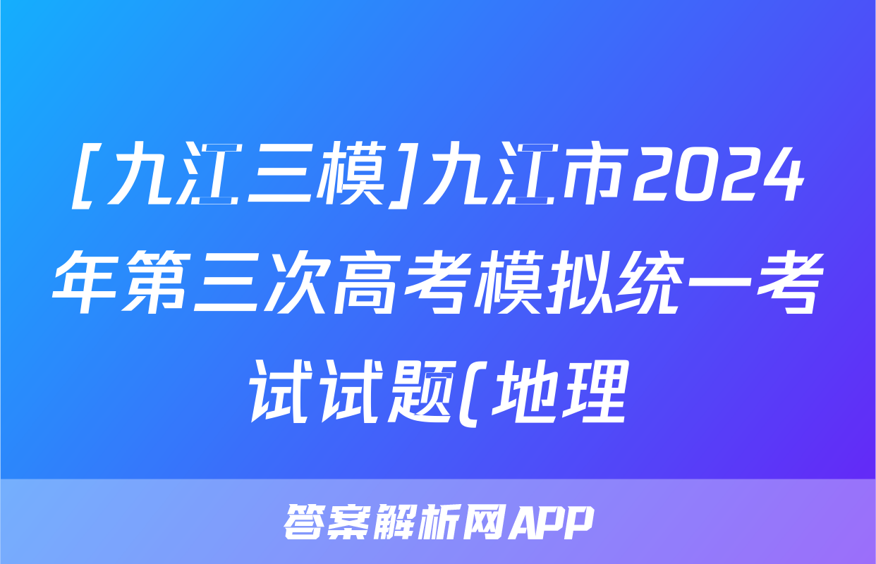 [九江三模]九江市2024年第三次高考模拟统一考试试题(地理)正在持续更新,目前大联考答案为大家整理了相关试题及答案,供大家查缺补漏,高效提升成绩。