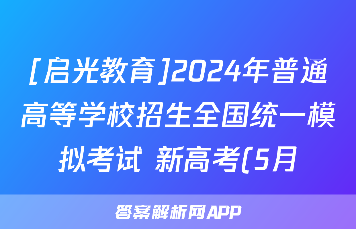 [启光教育]2024年普通高等学校招生全国统一模拟考试 新高考(5月)试题(生物)正在持续更新,目前大联考答案为大家整理了相关试题及答案,供大家查缺补漏,高效提升成绩。