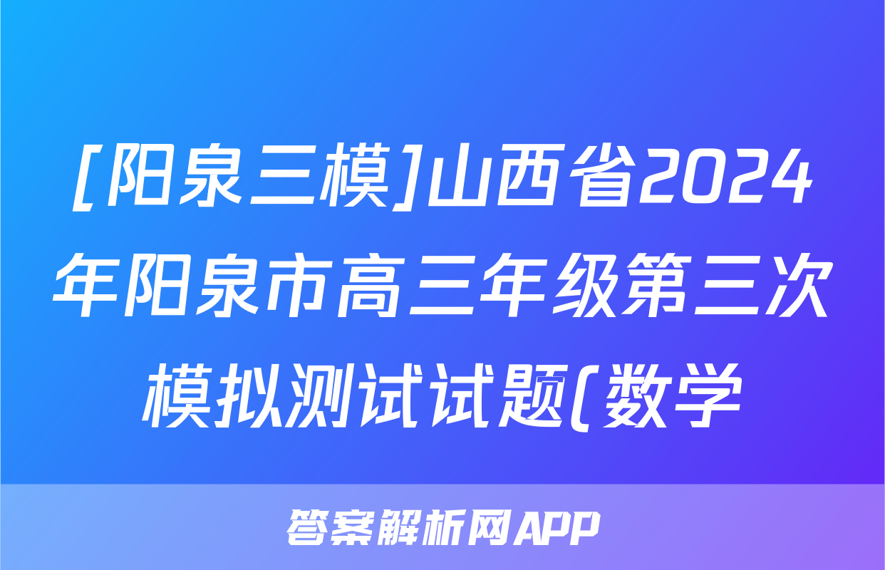 [阳泉三模]山西省2024年阳泉市高三年级第三次模拟测试试题(数学)正在持续更新,目前大联考答案为大家整理了相关试题及答案,供大家查缺补漏,高效提升成绩。