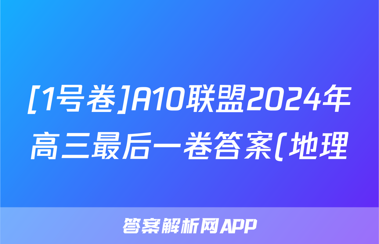 [1号卷]A10联盟2024年高三最后一卷答案(地理)正在持续更新,目前大联考答案为大家整理了相关试题及答案,供大家查缺补漏,高效提升成绩。