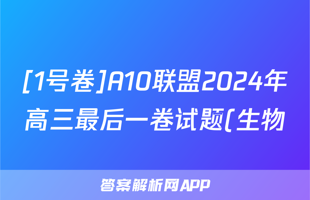 [1号卷]A10联盟2024年高三最后一卷试题(生物)正在持续更新,目前大联考答案为大家整理了相关试题及答案,供大家查缺补漏,高效提升成绩。