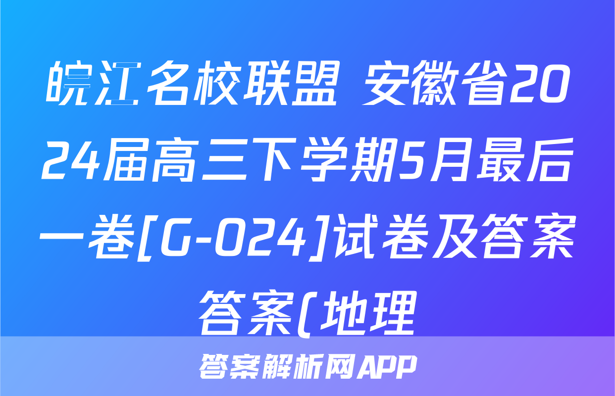 皖江名校联盟 安徽省2024届高三下学期5月最后一卷[G-024]试卷及答案答案(地理)正在持续更新,目前大联考答案为大家整理了相关试题及答案,供大家查缺补漏,高效提升成绩。