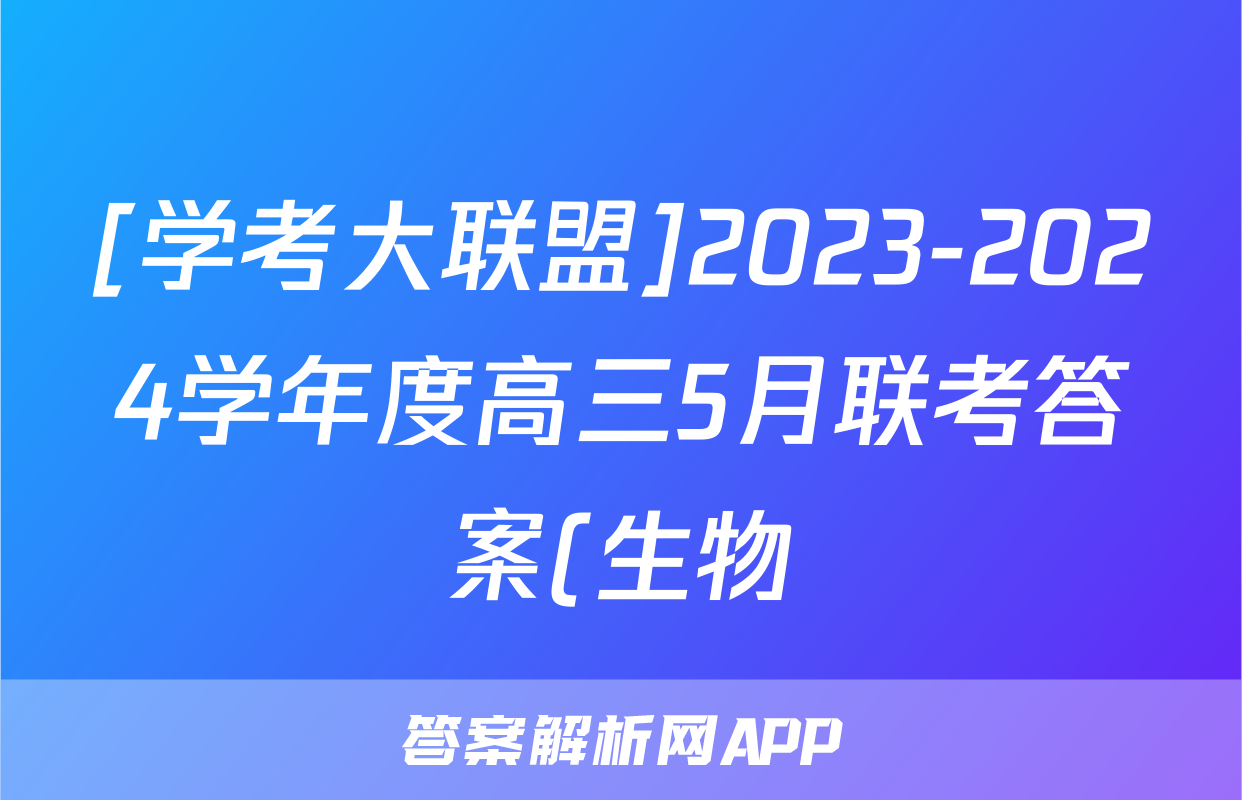 [学考大联盟]2023-2024学年度高三5月联考答案(生物)正在持续更新,目前大联考答案为大家整理了相关试题及答案,供大家查缺补漏,高效提升成绩。