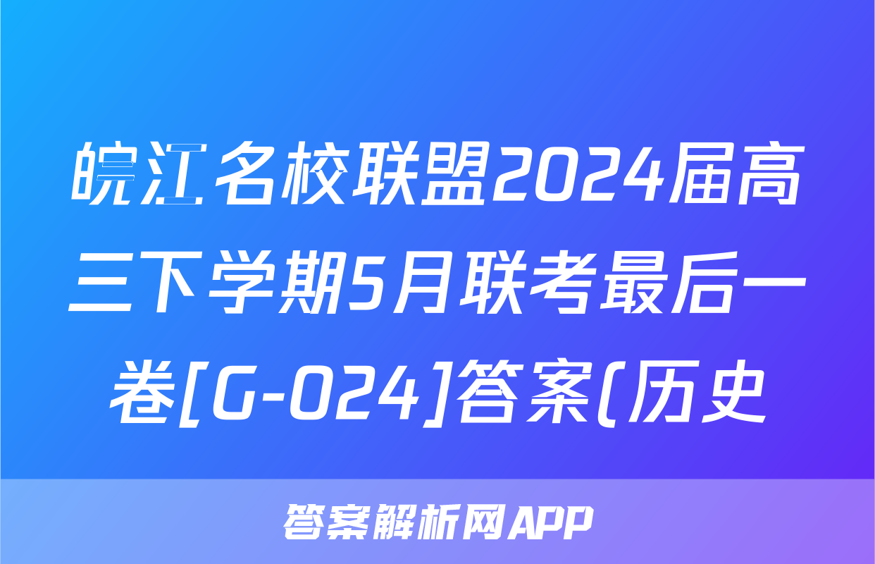 皖江名校联盟2024届高三下学期5月联考最后一卷[G-024]答案(历史)正在持续更新,目前大联考答案为大家整理了相关试题及答案,供大家查缺补漏,高效提升成绩。