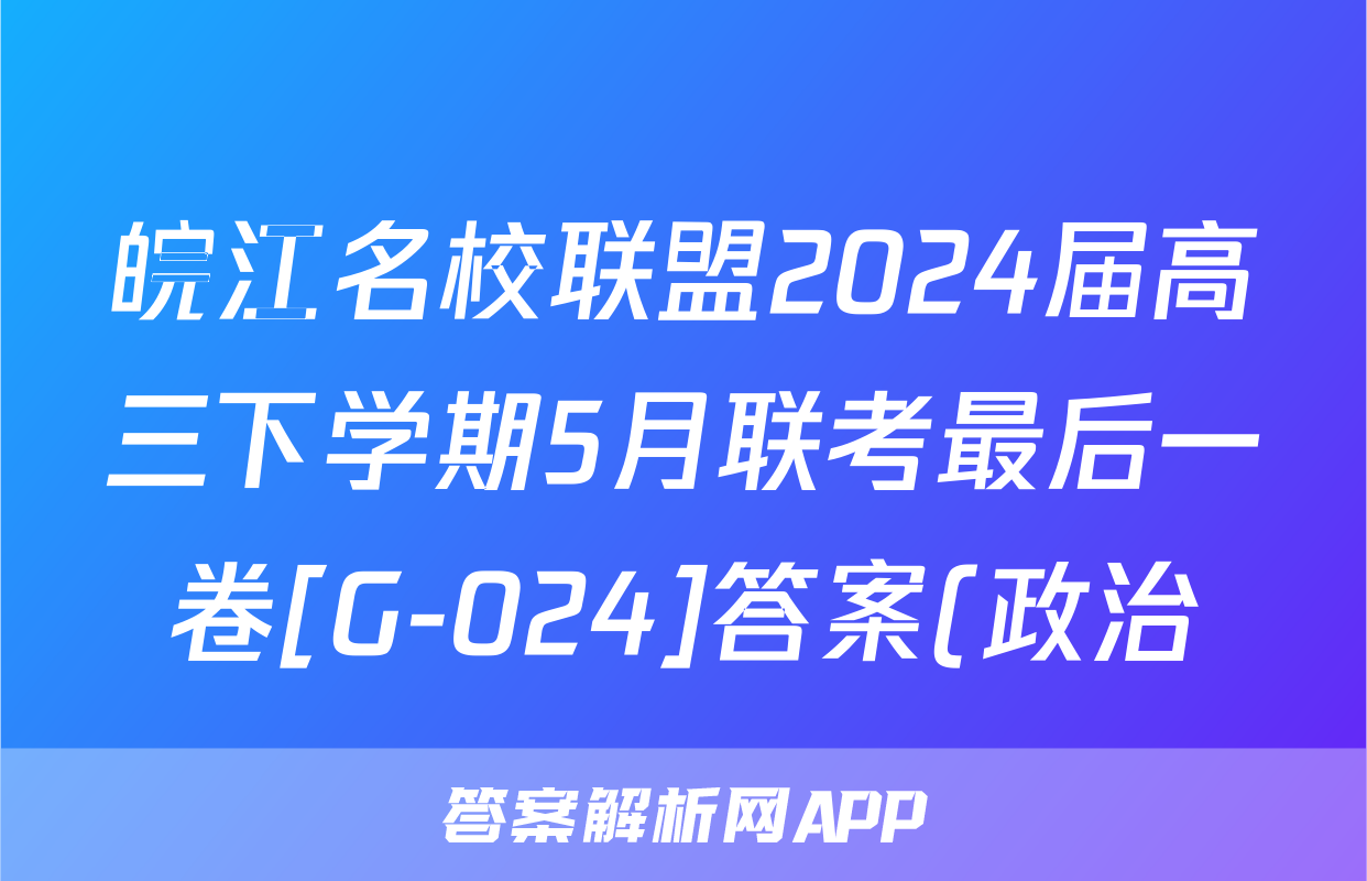 皖江名校联盟2024届高三下学期5月联考最后一卷[G-024]答案(政治)