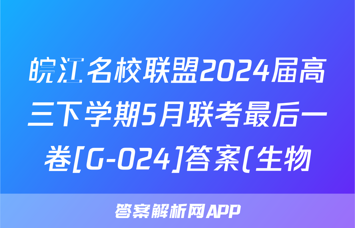 皖江名校联盟2024届高三下学期5月联考最后一卷[G-024]答案(生物)正在持续更新,目前大联考答案为大家整理了相关试题及答案,供大家查缺补漏,高效提升成绩。