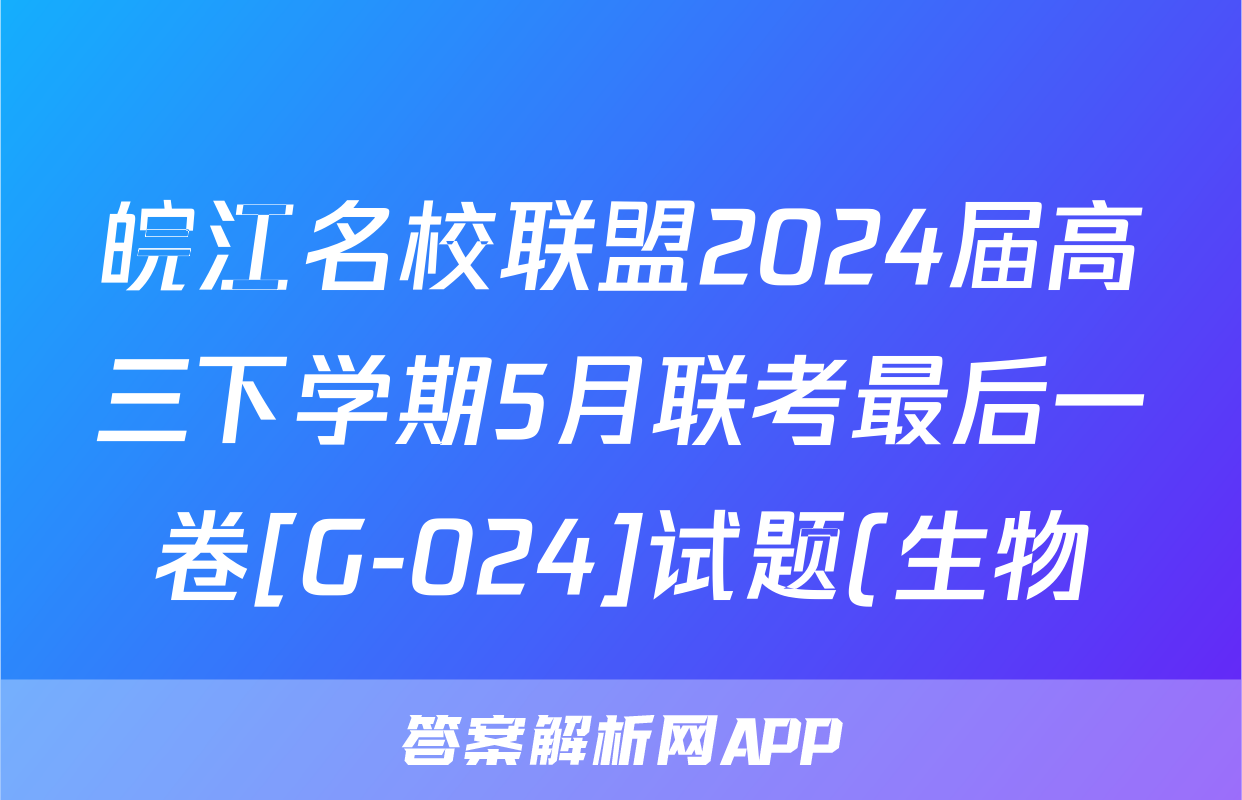 皖江名校联盟2024届高三下学期5月联考最后一卷[G-024]试题(生物)正在持续更新,目前大联考答案为大家整理了相关试题及答案,供大家查缺补漏,高效提升成绩。