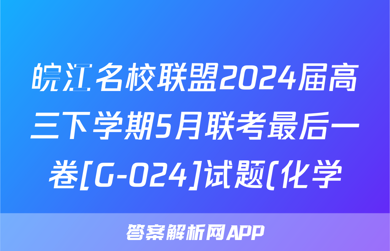 皖江名校联盟2024届高三下学期5月联考最后一卷[G-024]试题(化学)正在持续更新,目前大联考答案为大家整理了相关试题及答案,供大家查缺补漏,高效提升成绩。