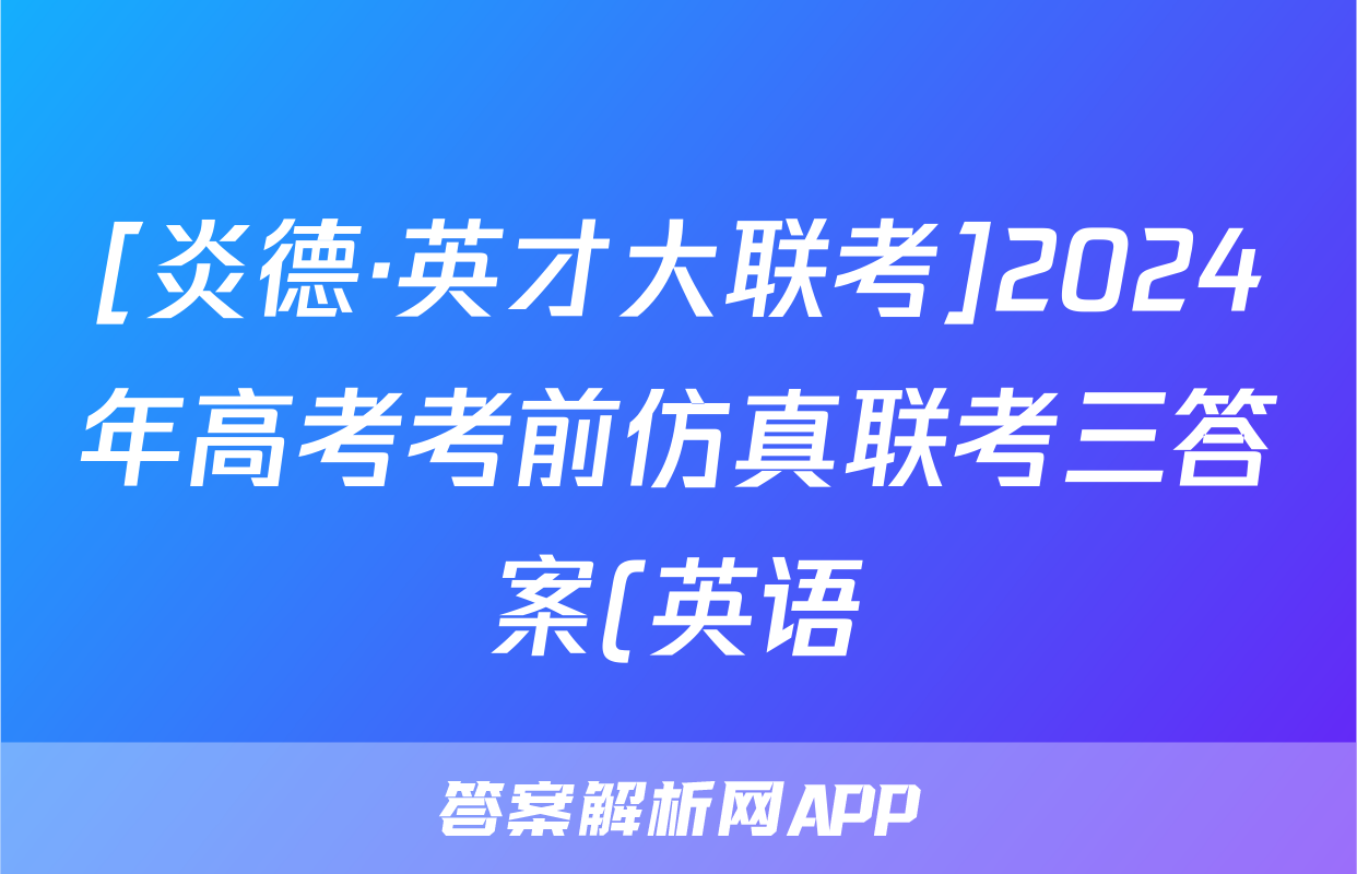 [炎德·英才大联考]2024年高考考前仿真联考三答案(英语)