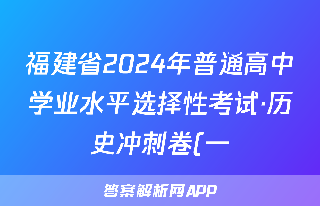 福建省2024年普通高中学业水平选择性考试·历史冲刺卷(一)1[24·(新高考)CCJ·历史·FJ]答案正在持续更新,目前大联考答案为大家整理了相关试题及答案,供大家查缺补漏,高效提升成绩。