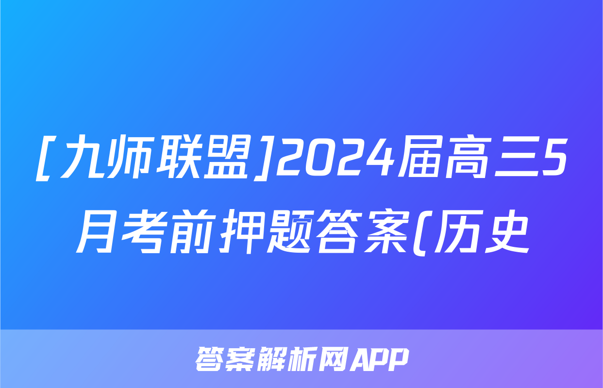 [九师联盟]2024届高三5月考前押题答案(历史)正在持续更新,目前大联考答案为大家整理了相关试题及答案,供大家查缺补漏,高效提升成绩。
