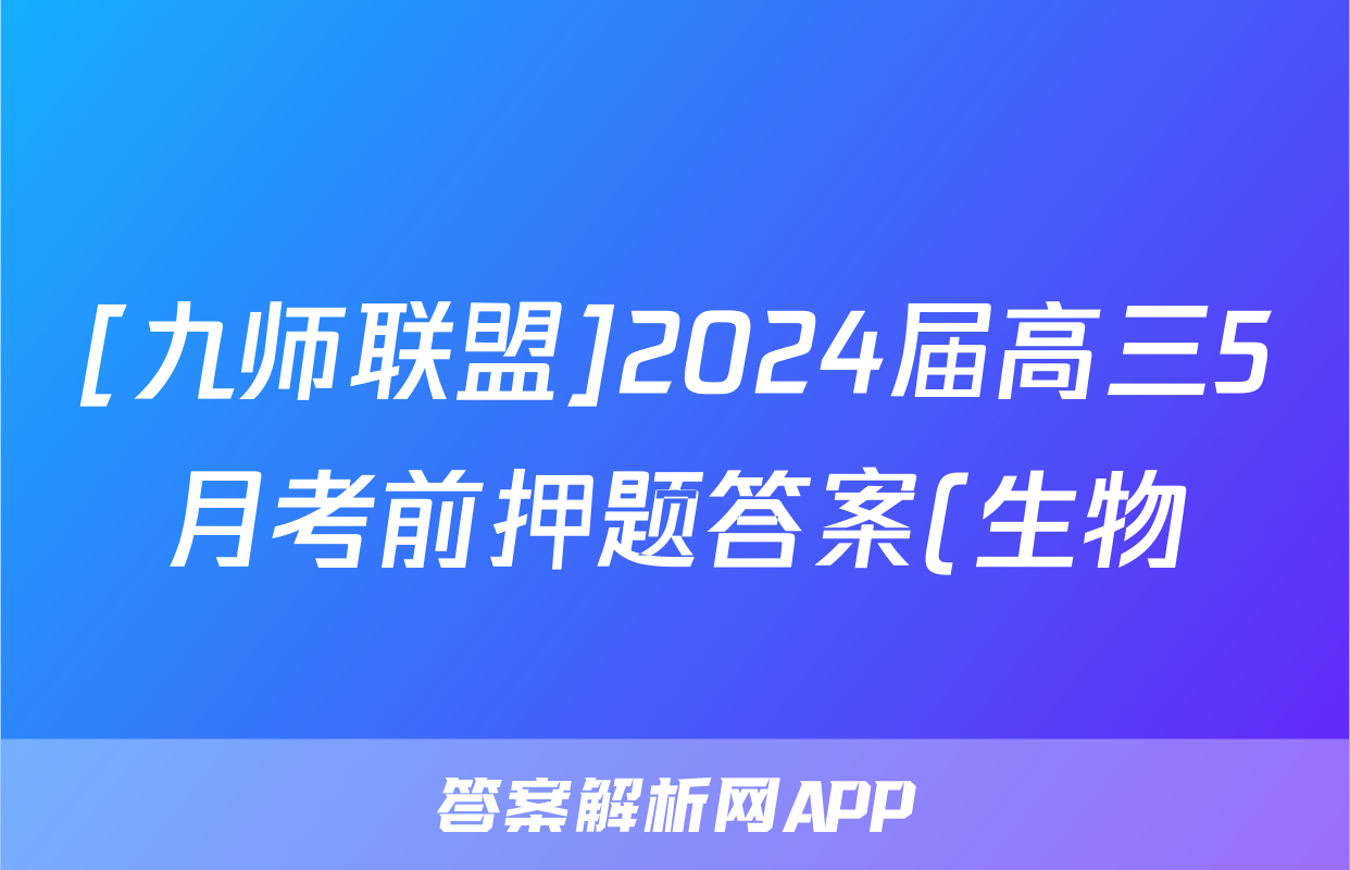 [九师联盟]2024届高三5月考前押题答案(生物)正在持续更新,目前大联考答案为大家整理了相关试题及答案,供大家查缺补漏,高效提升成绩。