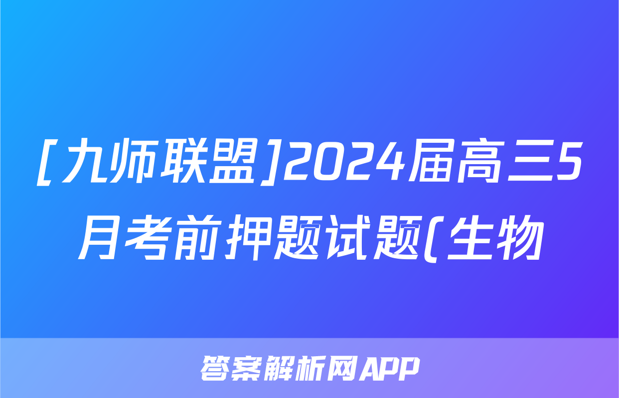 [九师联盟]2024届高三5月考前押题试题(生物)正在持续更新,目前大联考答案为大家整理了相关试题及答案,供大家查缺补漏,高效提升成绩。