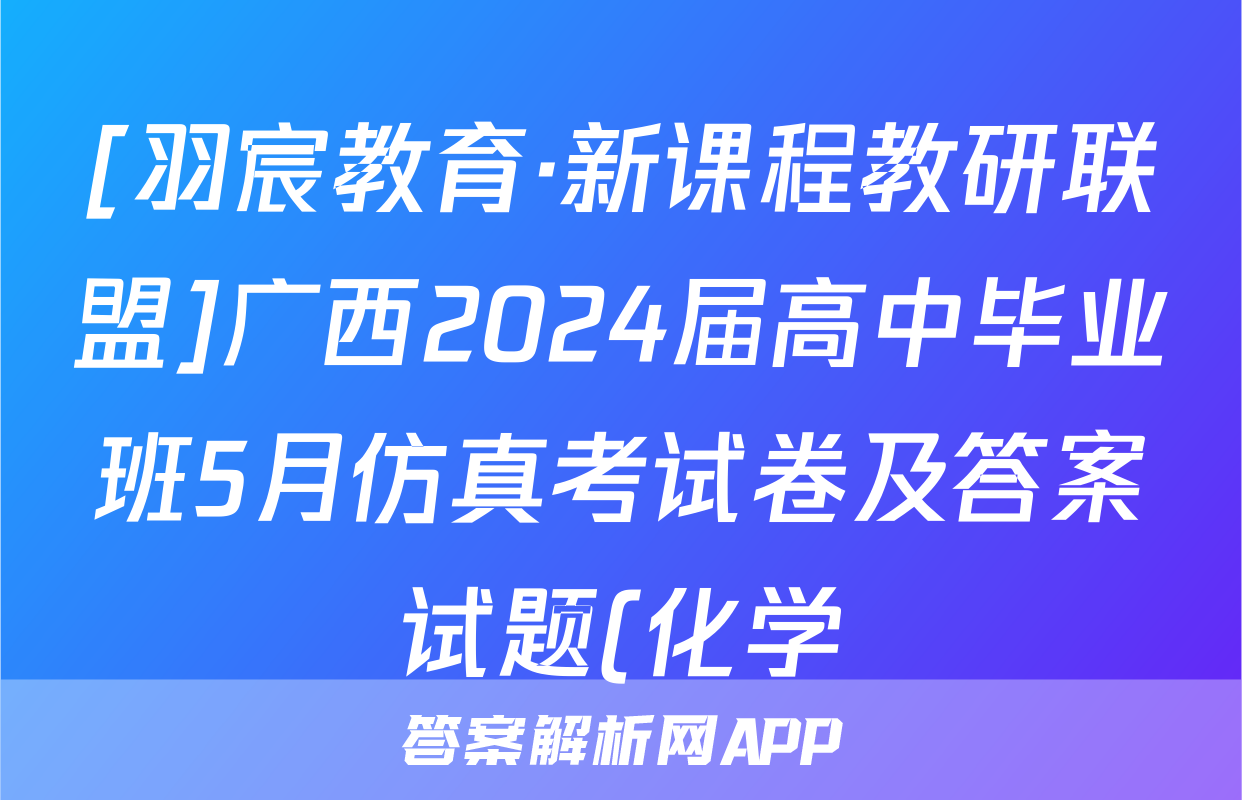 [羽宸教育·新课程教研联盟]广西2024届高中毕业班5月仿真考试卷及答案试题(化学)正在持续更新,目前大联考答案为大家整理了相关试题及答案,供大家查缺补漏,高效提升成绩。