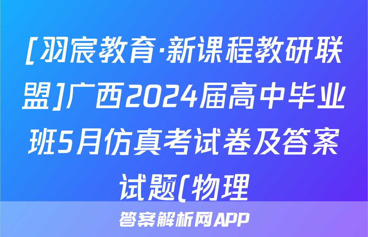 [羽宸教育·新课程教研联盟]广西2024届高中毕业班5月仿真考试卷及答案试题(物理)正在持续更新,目前大联考答案为大家整理了相关试题及答案,供大家查缺补漏,高效提升成绩。