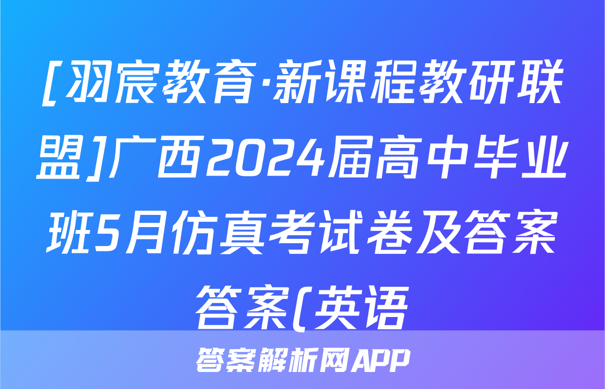 [羽宸教育·新课程教研联盟]广西2024届高中毕业班5月仿真考试卷及答案答案(英语)