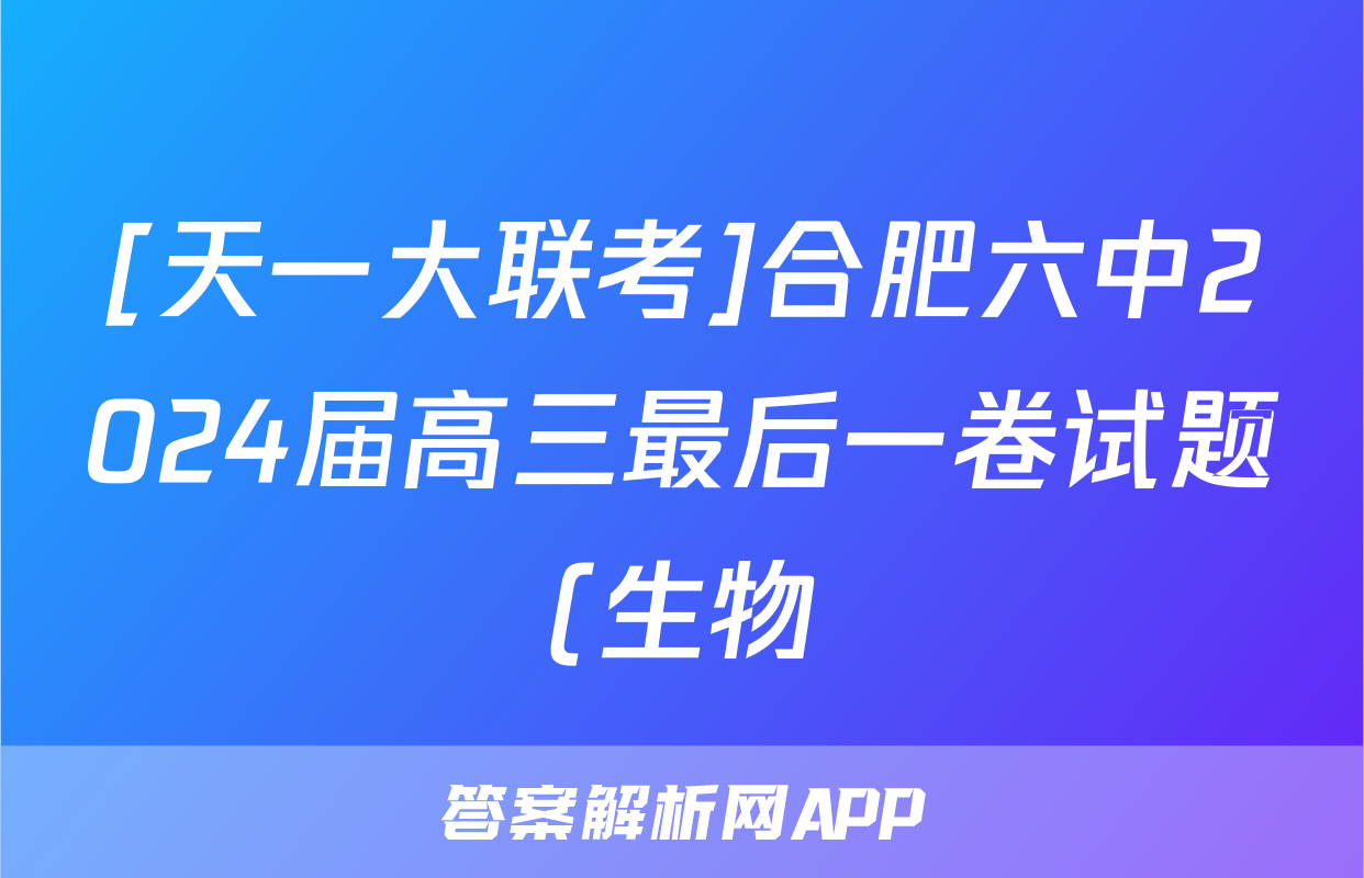[天一大联考]合肥六中2024届高三最后一卷试题(生物)正在持续更新,目前大联考答案为大家整理了相关试题及答案,供大家查缺补漏,高效提升成绩。