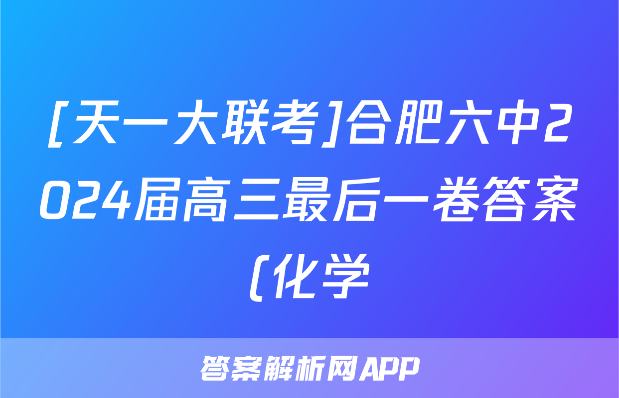 [天一大联考]合肥六中2024届高三最后一卷答案(化学)正在持续更新,目前大联考答案为大家整理了相关试题及答案,供大家查缺补漏,高效提升成绩。