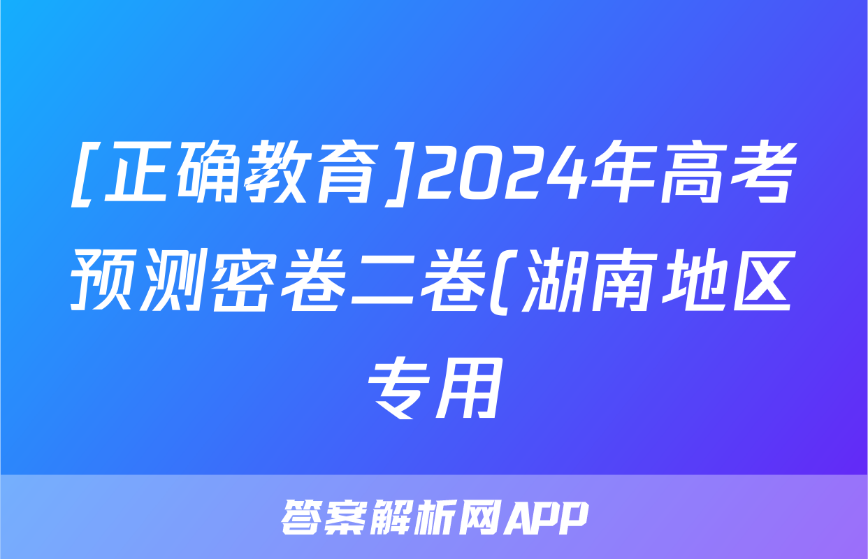 [正确教育]2024年高考预测密卷二卷(湖南地区专用)物理(湖南)试题正在持续更新,目前大联考答案为大家整理了相关试题及答案,供大家查缺补漏,高效提升成绩。