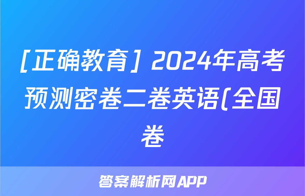 [正确教育] 2024年高考预测密卷二卷英语(全国卷)答案