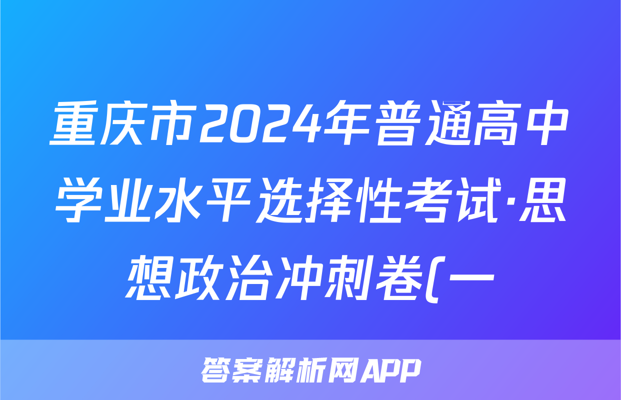 重庆市2024年普通高中学业水平选择性考试·思想政治冲刺卷(一)1[24·(新高考)CCJ·思想政治·CQ]答案正在持续更新,目前大联考答案为大家整理了相关试题及答案,供大家查缺补漏,高效提升成绩。