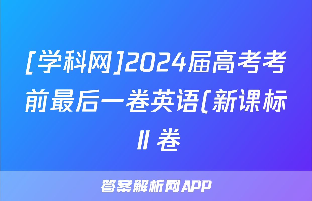 [学科网]2024届高考考前最后一卷英语(新课标Ⅱ卷)试题正在持续更新,目前大联考答案为大家整理了相关试题及答案,供大家查缺补漏,高效提升成绩。
