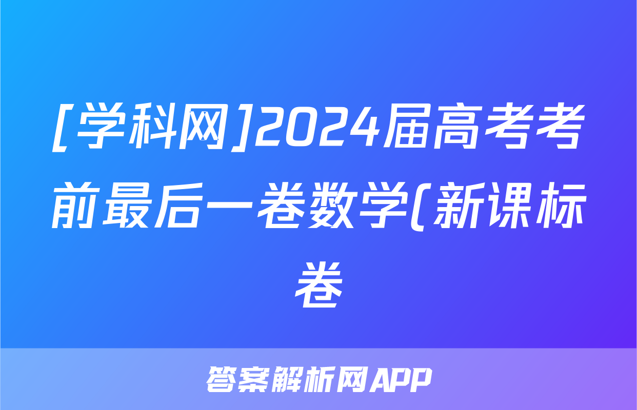 [学科网]2024届高考考前最后一卷数学(新课标卷)答案正在持续更新,目前大联考答案为大家整理了相关试题及答案,供大家查缺补漏,高效提升成绩。