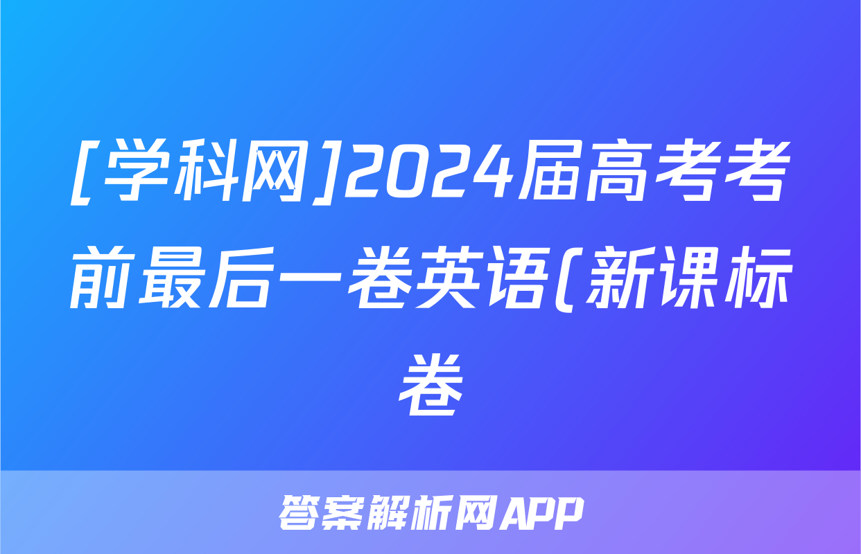 [学科网]2024届高考考前最后一卷英语(新课标卷)试题正在持续更新,目前大联考答案为大家整理了相关试题及答案,供大家查缺补漏,高效提升成绩。
