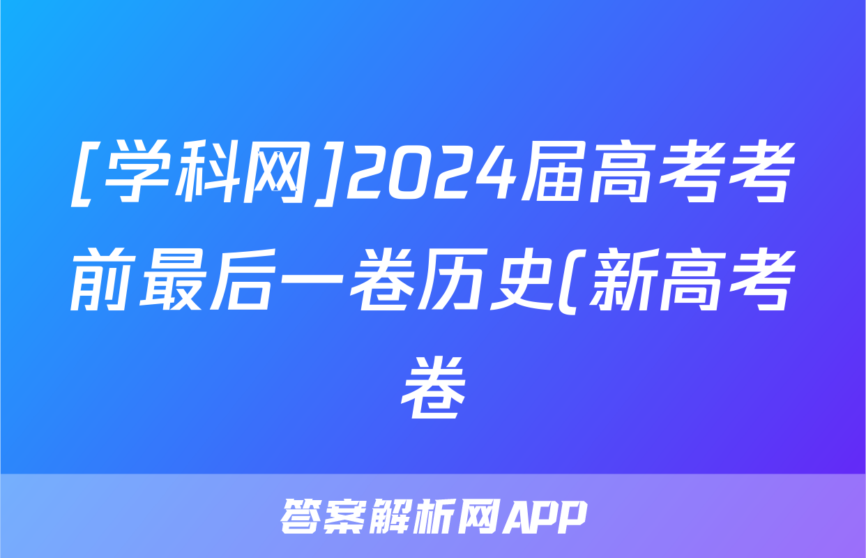 [学科网]2024届高考考前最后一卷历史(新高考卷)(新教材)答案正在持续更新,目前大联考答案为大家整理了相关试题及答案,供大家查缺补漏,高效提升成绩。