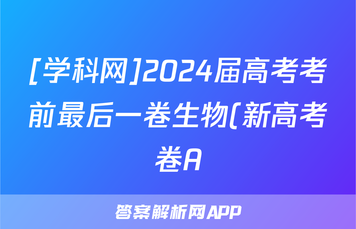 [学科网]2024届高考考前最后一卷生物(新高考卷A)(新教材)试题正在持续更新,目前大联考答案为大家整理了相关试题及答案,供大家查缺补漏,高效提升成绩。