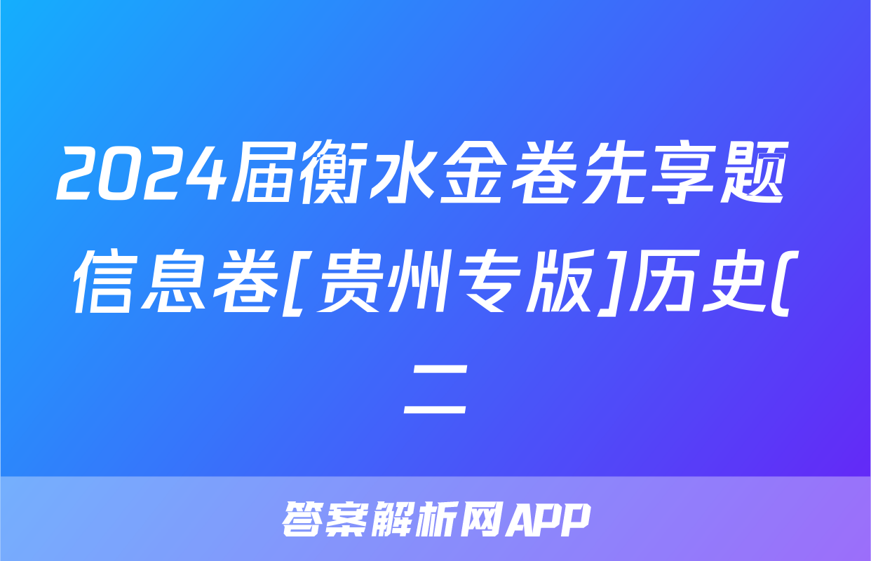 2024届衡水金卷先享题 信息卷[贵州专版]历史(二)2答案正在持续更新,目前大联考答案为大家整理了相关试题及答案,供大家查缺补漏,高效提升成绩。