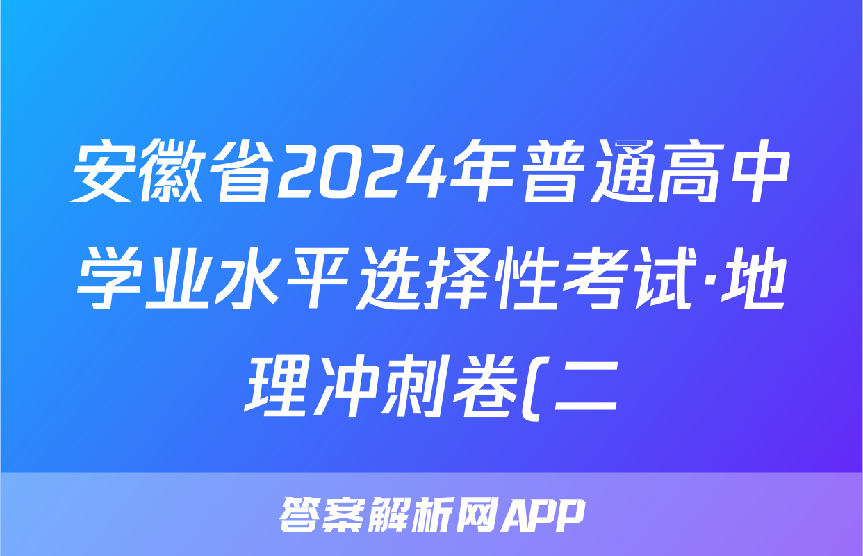 安徽省2024年普通高中学业水平选择性考试·地理冲刺卷(二)2[24·(新高考)CCJ·地理·AH]答案正在持续更新,目前大联考答案为大家整理了相关试题及答案,供大家查缺补漏,高效提升成绩。