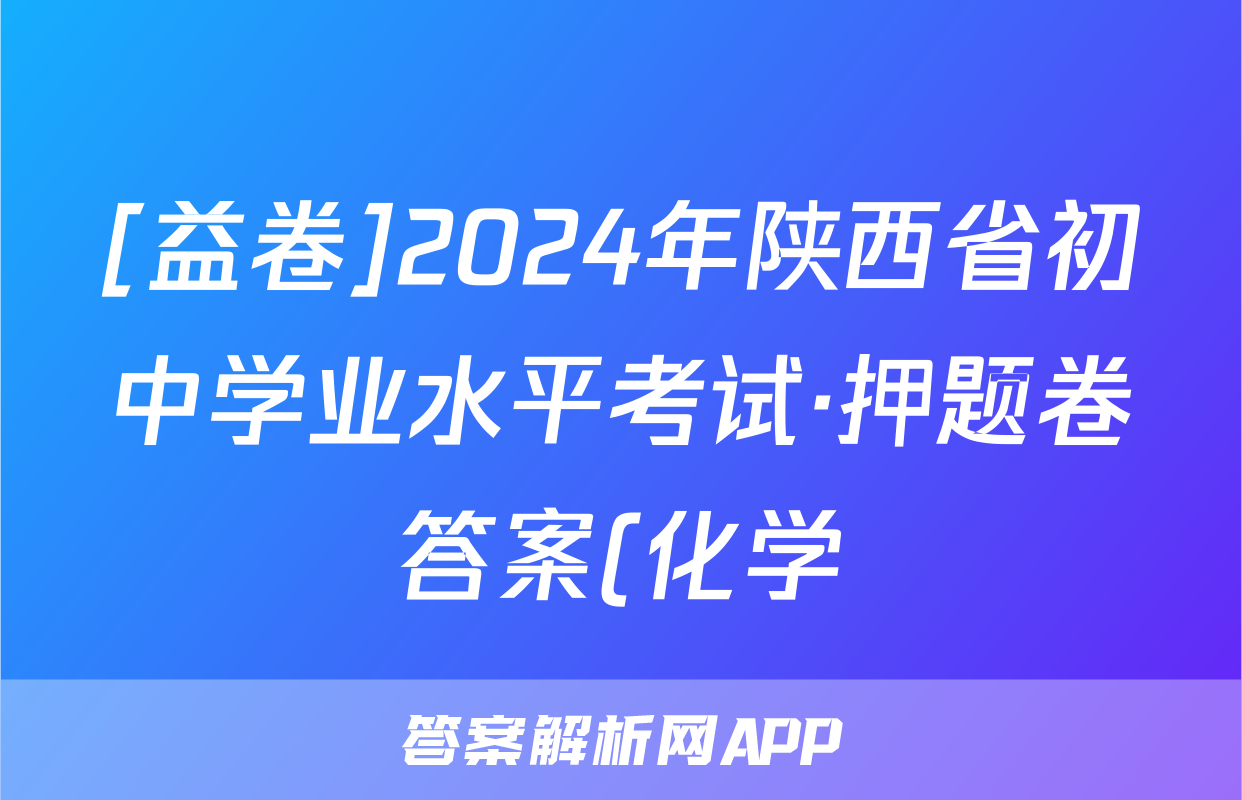 [益卷]2024年陕西省初中学业水平考试·押题卷答案(化学)正在持续更新,目前大联考答案为大家整理了相关试题及答案,供大家查缺补漏,高效提升成绩。