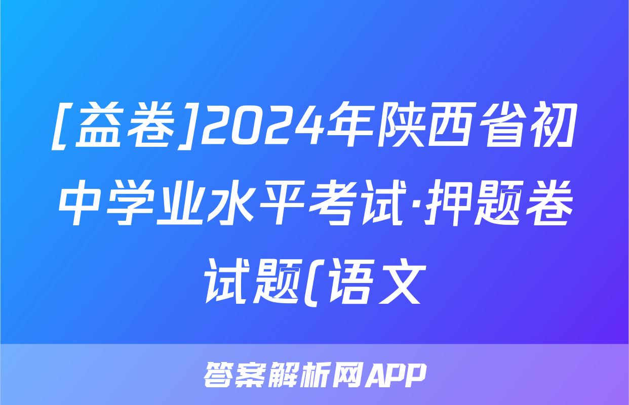 [益卷]2024年陕西省初中学业水平考试·押题卷试题(语文)正在持续更新,目前大联考答案为大家整理了相关试题及答案,供大家查缺补漏,高效提升成绩。