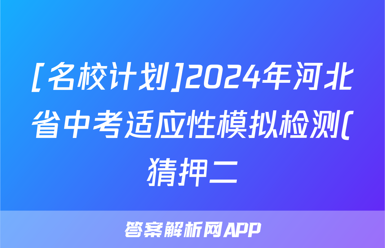 [名校计划]2024年河北省中考适应性模拟检测(猜押二)答案(化学)正在持续更新,目前大联考答案为大家整理了相关试题及答案,供大家查缺补漏,高效提升成绩。