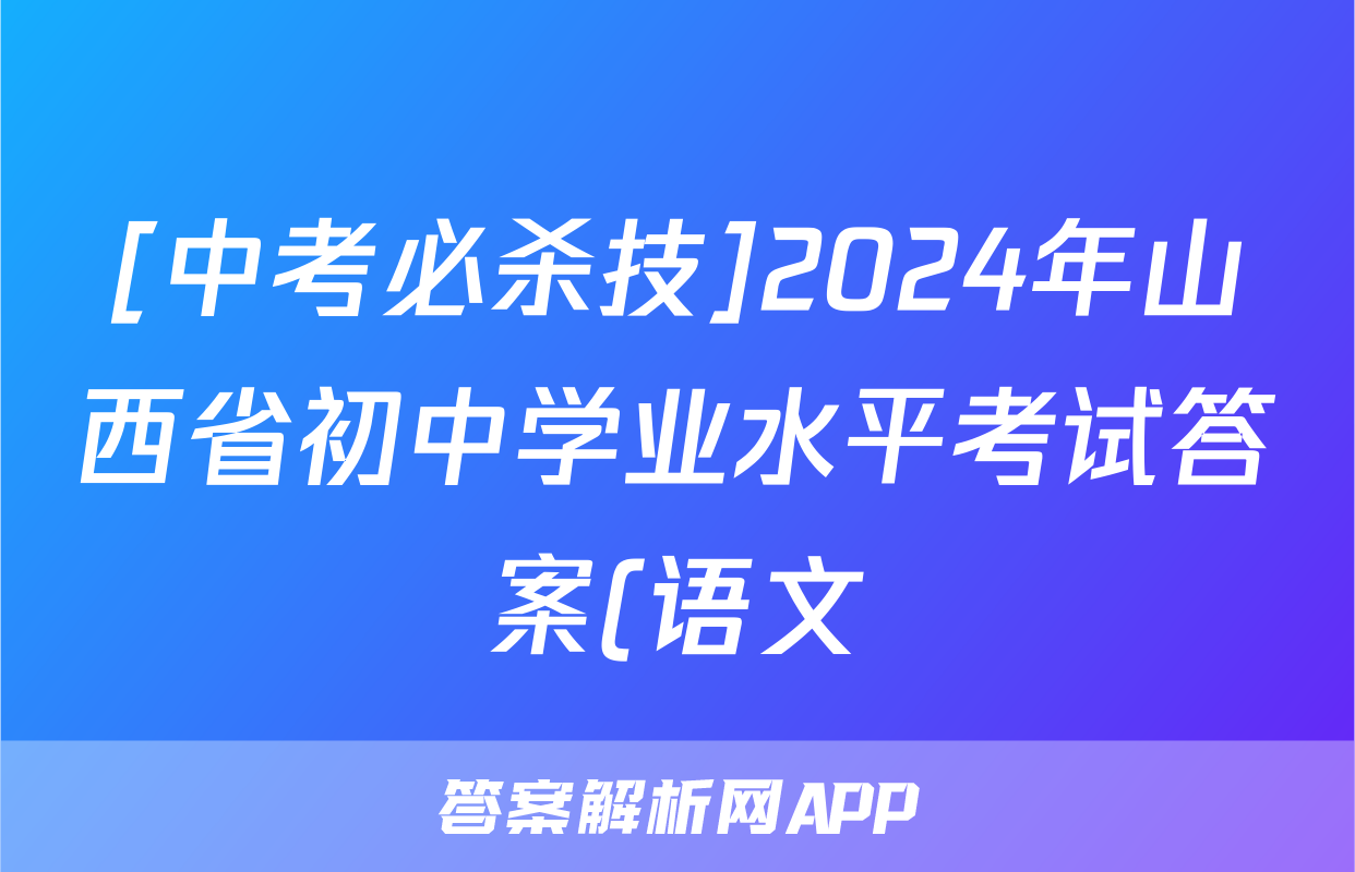[中考必杀技]2024年山西省初中学业水平考试答案(语文)正在持续更新,目前大联考答案为大家整理了相关试题及答案,供大家查缺补漏,高效提升成绩。