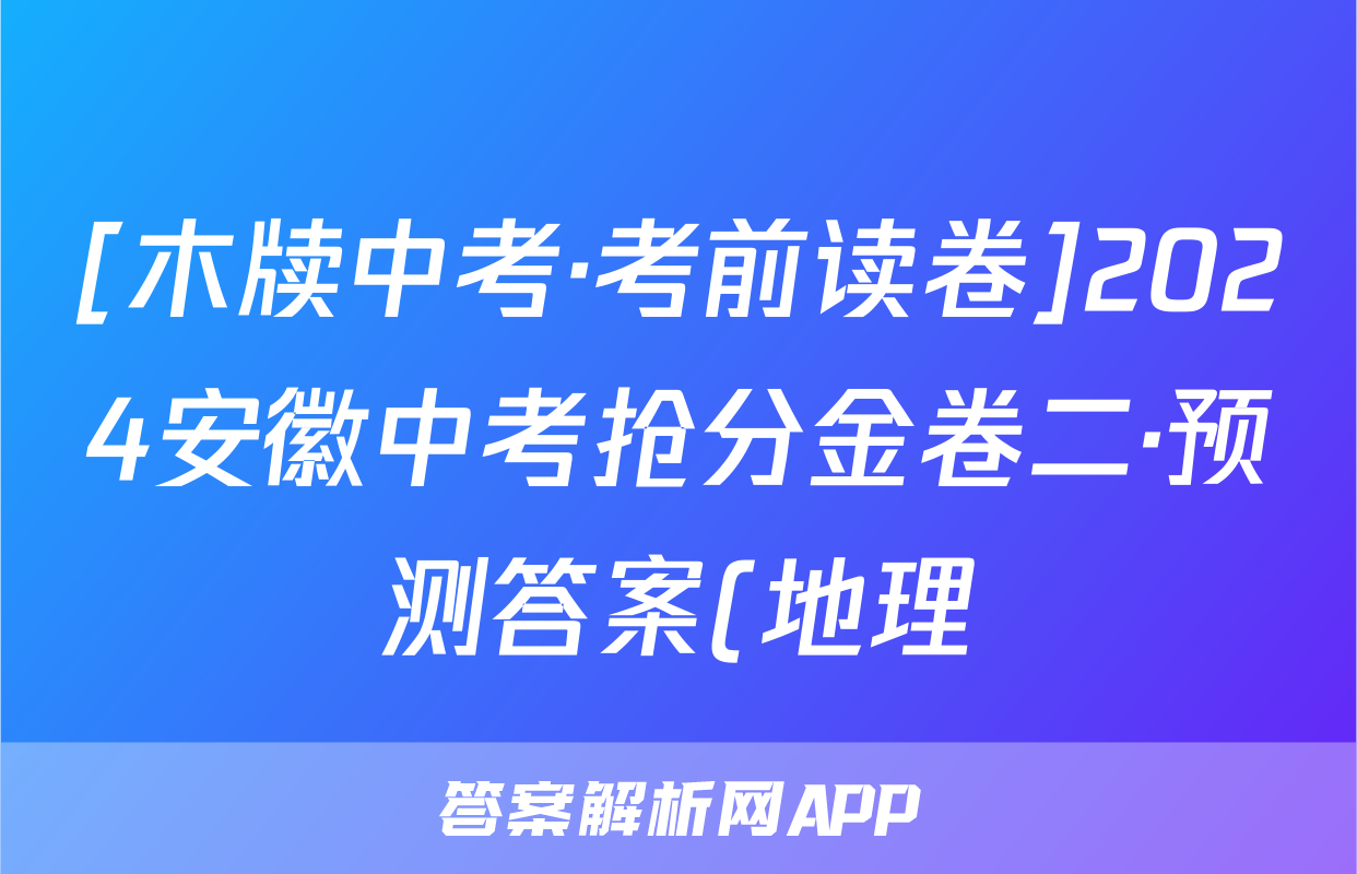 [木牍中考·考前读卷]2024安徽中考抢分金卷二·预测答案(地理)正在持续更新,目前大联考答案为大家整理了相关试题及答案,供大家查缺补漏,高效提升成绩。