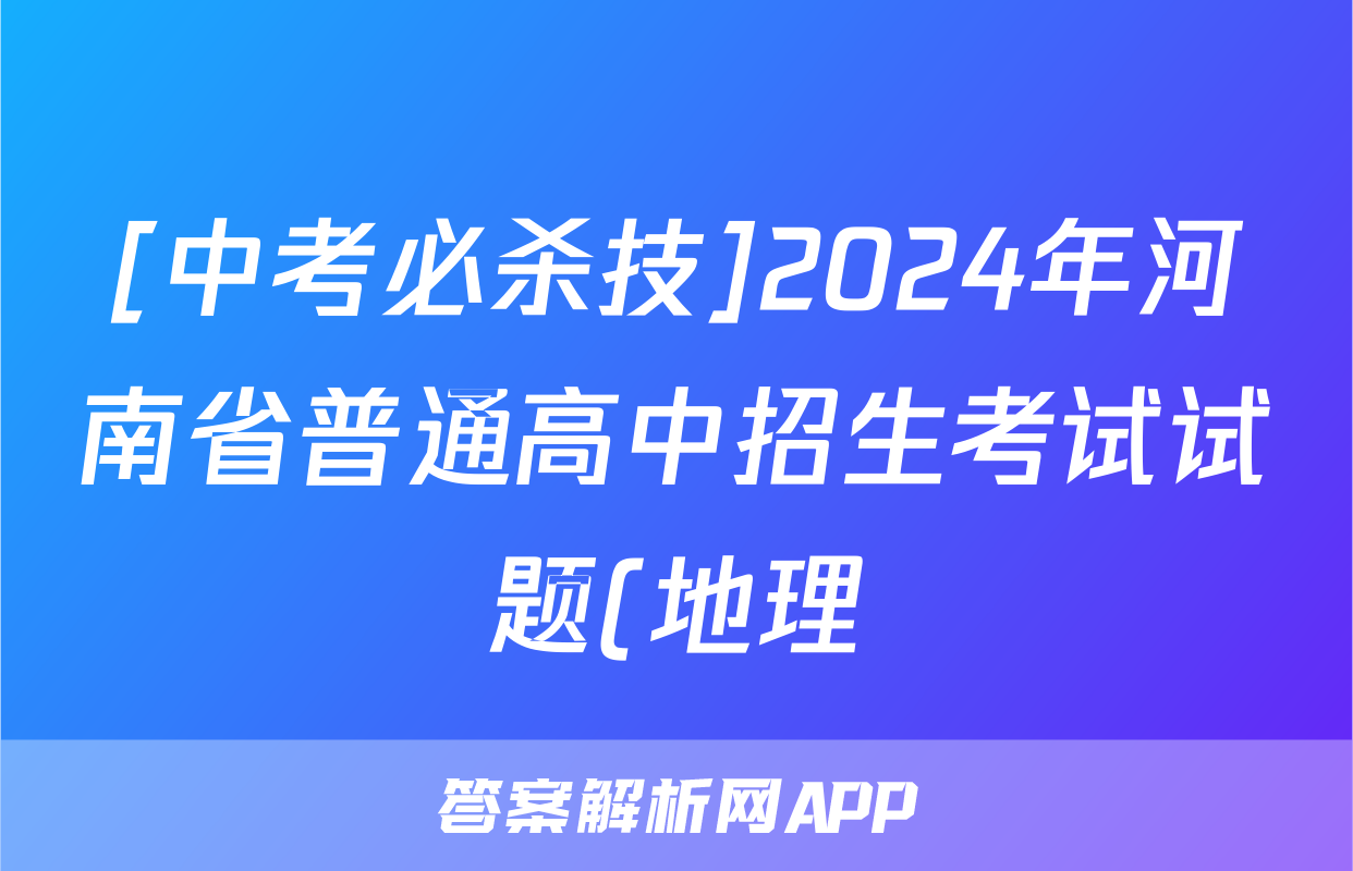 [中考必杀技]2024年河南省普通高中招生考试试题(地理)正在持续更新,目前大联考答案为大家整理了相关试题及答案,供大家查缺补漏,高效提升成绩。