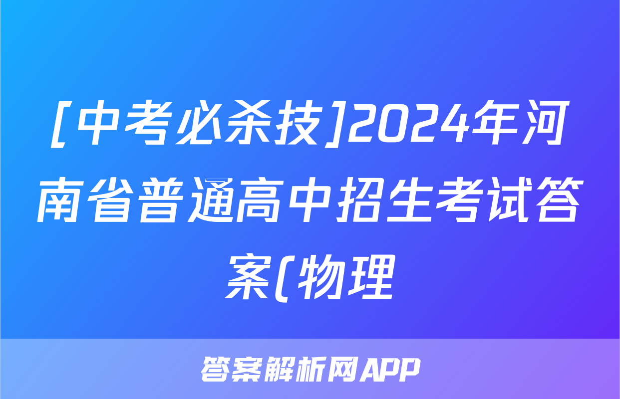 [中考必杀技]2024年河南省普通高中招生考试答案(物理)