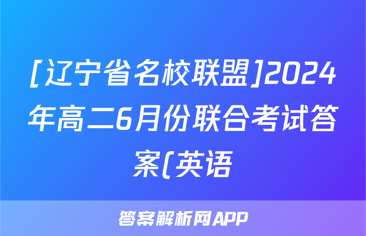 [辽宁省名校联盟]2024年高二6月份联合考试答案(英语)正在持续更新,目前大联考答案为大家整理了相关试题及答案,供大家查缺补漏,高效提升成绩。