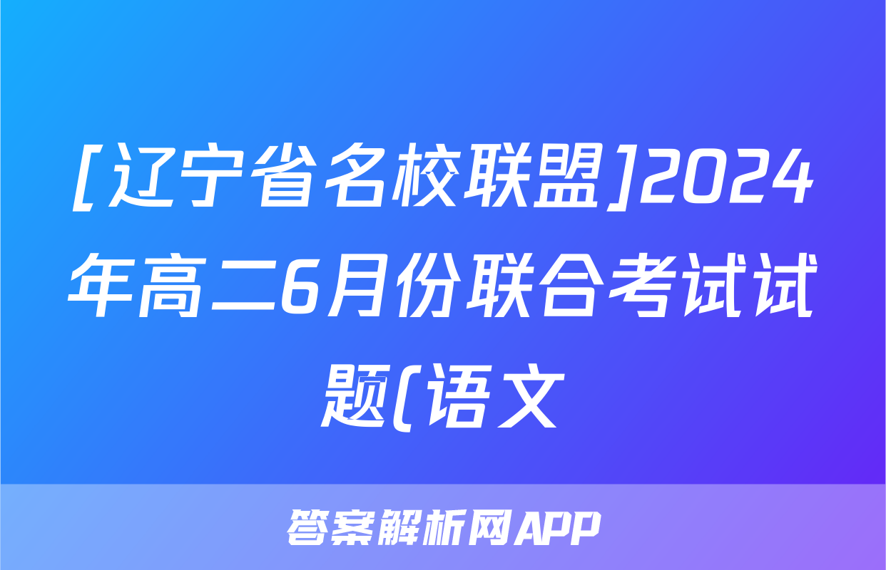 [辽宁省名校联盟]2024年高二6月份联合考试试题(语文)正在持续更新,目前大联考答案为大家整理了相关试题及答案,供大家查缺补漏,高效提升成绩。