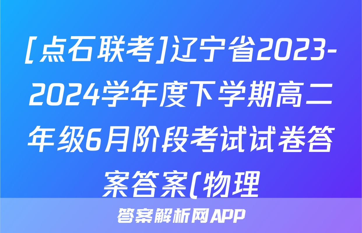 [点石联考]辽宁省2023-2024学年度下学期高二年级6月阶段考试试卷答案答案(物理)正在持续更新,目前大联考答案为大家整理了相关试题及答案,供大家查缺补漏,高效提升成绩。