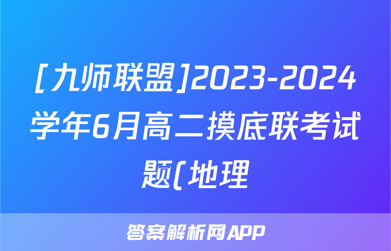 [九师联盟]2023-2024学年6月高二摸底联考试题(地理)正在持续更新,目前大联考答案为大家整理了相关试题及答案,供大家查缺补漏,高效提升成绩。