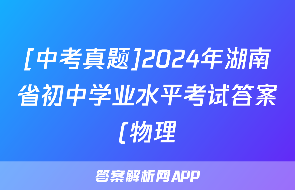 [中考真题]2024年湖南省初中学业水平考试答案(物理)正在持续更新,目前大联考答案为大家整理了相关试题及答案,供大家查缺补漏,高效提升成绩。