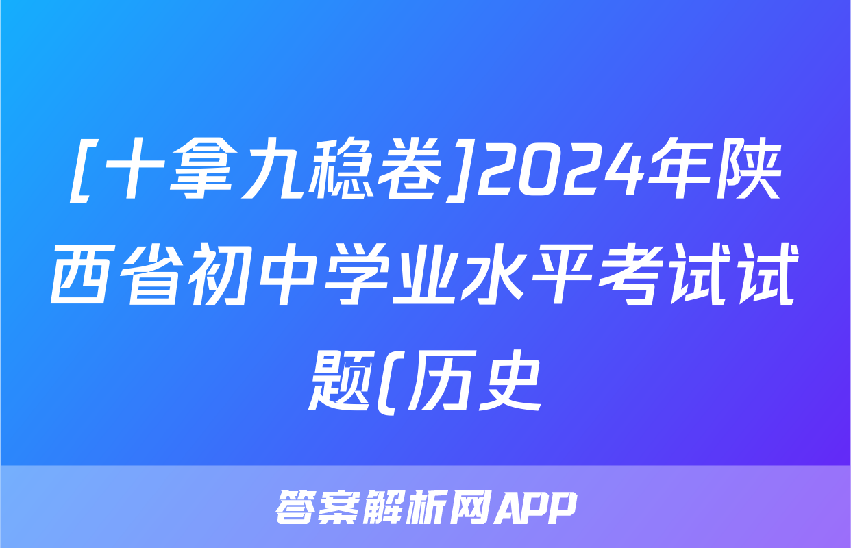 [十拿九稳卷]2024年陕西省初中学业水平考试试题(历史)正在持续更新,目前大联考答案为大家整理了相关试题及答案,供大家查缺补漏,高效提升成绩。