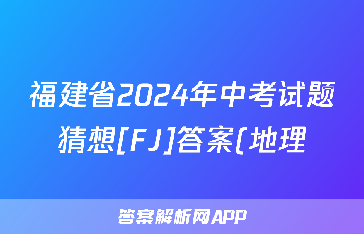 福建省2024年中考试题猜想[FJ]答案(地理)正在持续更新,目前大联考答案为大家整理了相关试题及答案,供大家查缺补漏,高效提升成绩。